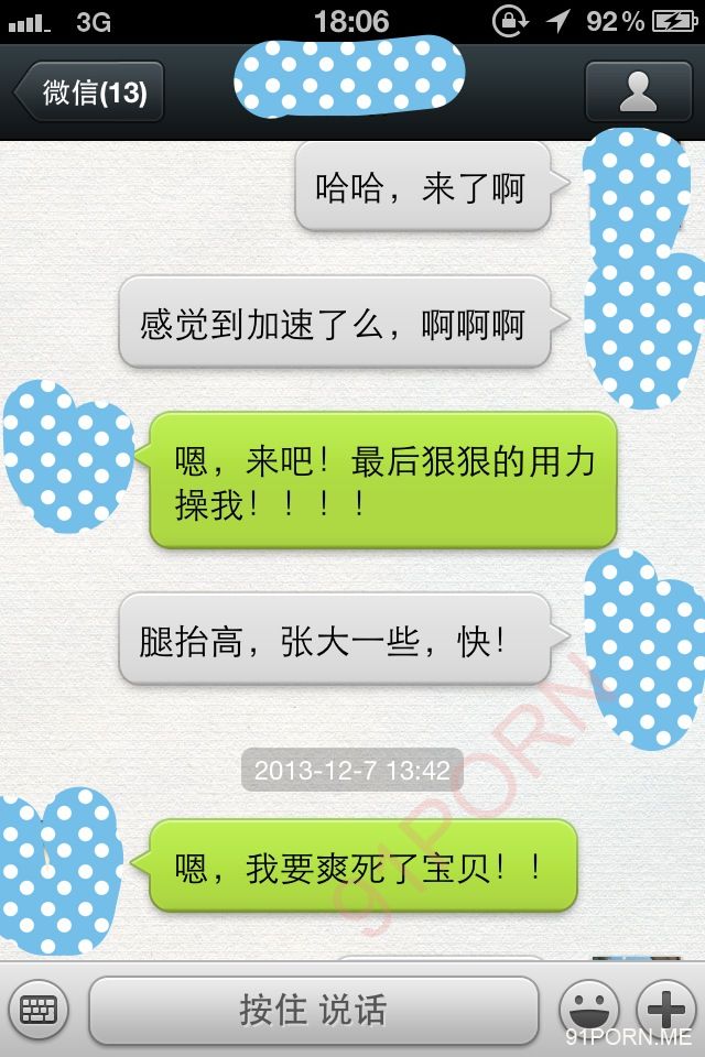 闲话少说,上次足球宝贝的续集内容在硬盘修好后我还在整理,没那么快。本季就先上一段最近无聊跟她微信调情的内容让大家娱乐娱乐罢。
