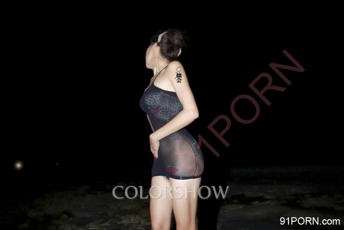近天黑才上岛,晚饭后就让她换上下面图中这件黑底透花筒裙,当时这样安排是有道理的:妹纸虽然接受了我,但接受这么穿、这么拍还是需要一个过程,这件虽然透但整体没这么暴露,加之是黑色的在夜晚远些看不清,晚上海边也没什么人,可以让她预热一下(奸笑)