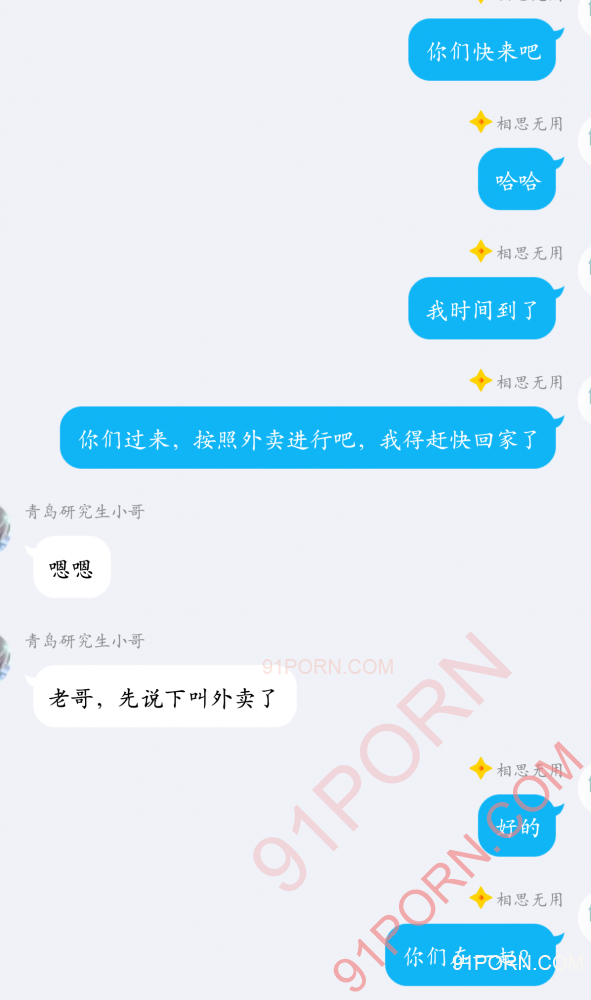 (3)我、青岛小哥、女主小蝶一起回酒店,叫好外卖;