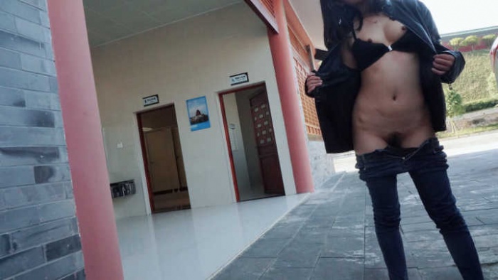 【申精】 停车场厕所肆意露出,引路人小哥前来野战