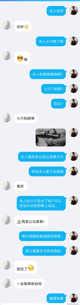前面是老公加我让我加她老婆,引导老婆自慰的,很快就加上了!母狗也很放得开!自己拿着假鸡巴去另一个房间和我聊天自慰,叫声太美妙了!有情趣的自己看吧!