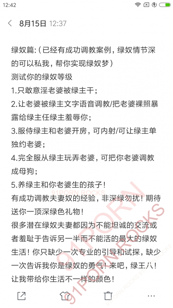 生活丰富无奇不有,每个人的绿奴情节都不一样,又存在共同点,本人遇到的有以下: