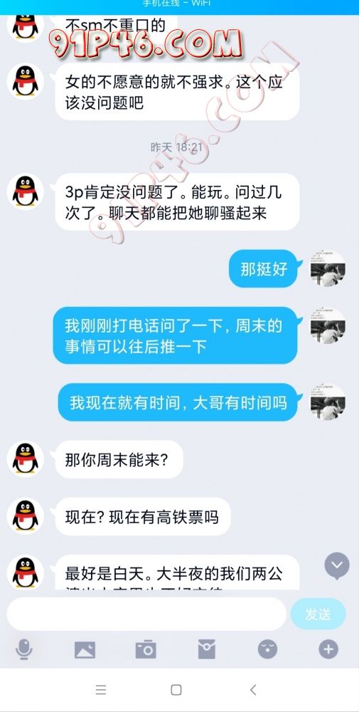 昨天中午12点左右,大哥加了我的联系方式,然后断断续续的聊了一下午,通过了解得知,大哥大嫂87年的,他们夫妻十几岁的时候就认识,然后一路走来十几年,也是觉得日子平淡如水,再加上大哥也有轻微的淫妻癖,前前后后也花了好多精力开发嫂子,现在开发的差不多了,想找一个靠谱的单男活动一次,体验一下感觉。。
