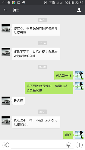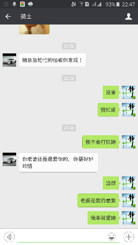 在老婆不知情的情况下,我也加了其网友,并坦言我可以配合,但我要求制定进展和过程。