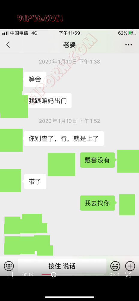 丈母娘和老婆一起去了外地玩,老婆的一个网友去找老婆了和我老婆她们开了同一个宾馆,在他们隔壁开了房间,我老婆开始以为是单纯的朋友关系,然后就过去找他聊天我丈母娘也知道,聊着聊着那男的就不老实了,然后就操了我老婆,我一直给老婆灌输3p思想可能老婆心里防线破了吧,后来我在app里发现了订房信息发现定了两个房还有个就是苹果手机的照片都通这发现了老婆和他的聊天记录,附赠一组我和我老婆的聊天记录,当时做成视频发到视频站奈何审核不通过,现在等于说我老婆给网友开的房过去被网友操了,操完了还请人家吃的饭,由于老婆没工作显而易见花的都是我的钱