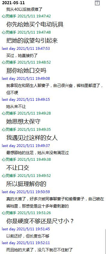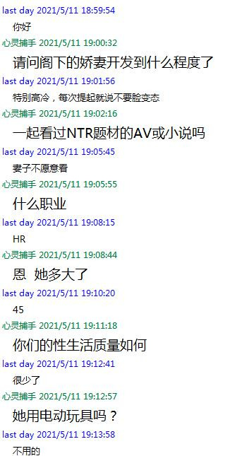 平时夫妻俩都在家时,她从不上线,只有丈夫出差,才会与我聊上一整晚。