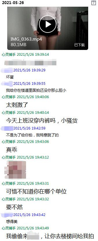 这是加她的第一天晚上,丈夫出差在外,给我发了一段曾经的自拍视频,转发给丈夫后的反应