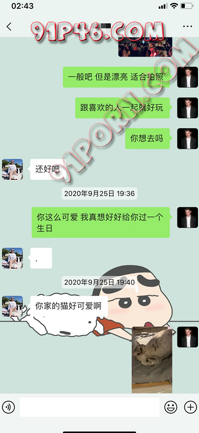 于是中间我整整一个月都没跟她怎么聊,偶尔就是朋友圈相互互动一下。当我在9月25号的时候看到她发了一条朋友圈,得知今天是她生日的时候,我觉得机会来了。因为我一直有关注她的朋友圈,觉得她好像最近过得不是特别好,而且生日的时候好像还在工作,于是我在这个时候找她聊天了。聊天的第一句,还是漂亮妹妹,先夸一夸她。