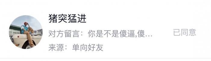 这位朋友加我一直不说话,过了三天我说你发几张照片吧,他回了个问号,我实在不知道能说啥了,把他删了。过了一会他就加我骂我傻逼,然后把我举报了。教养真好啊
