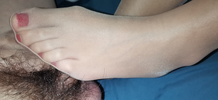 嫂子的丝袜脚看起来很诱惑呢。