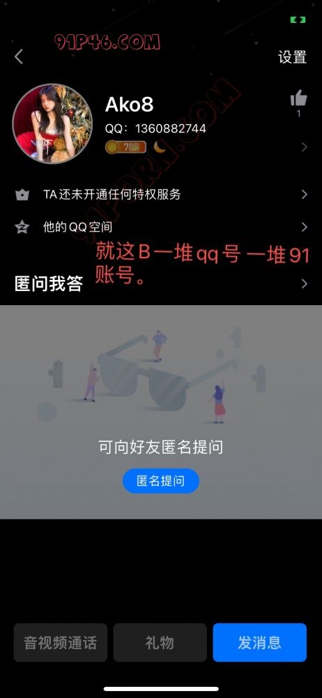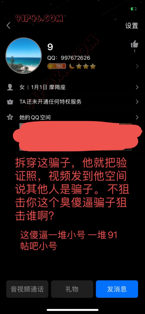 他这是大鱼撒网全国各地的人都加,然后让人拉到一个qq群里,卖假视频,骗着说低价卖91帖子(给一个钱T一个人,你骂他他用你验证照片威胁)。跟情侣夫妻私聊然后说开房见面直接转房费等等等等等