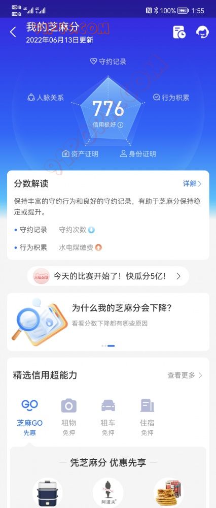 支付宝信用分: