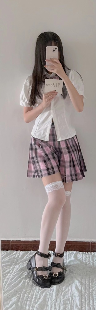 无比真实的大奶以及白白嫩嫩的肌肤,属于标准的丰腴身段,jk裙子很诱惑