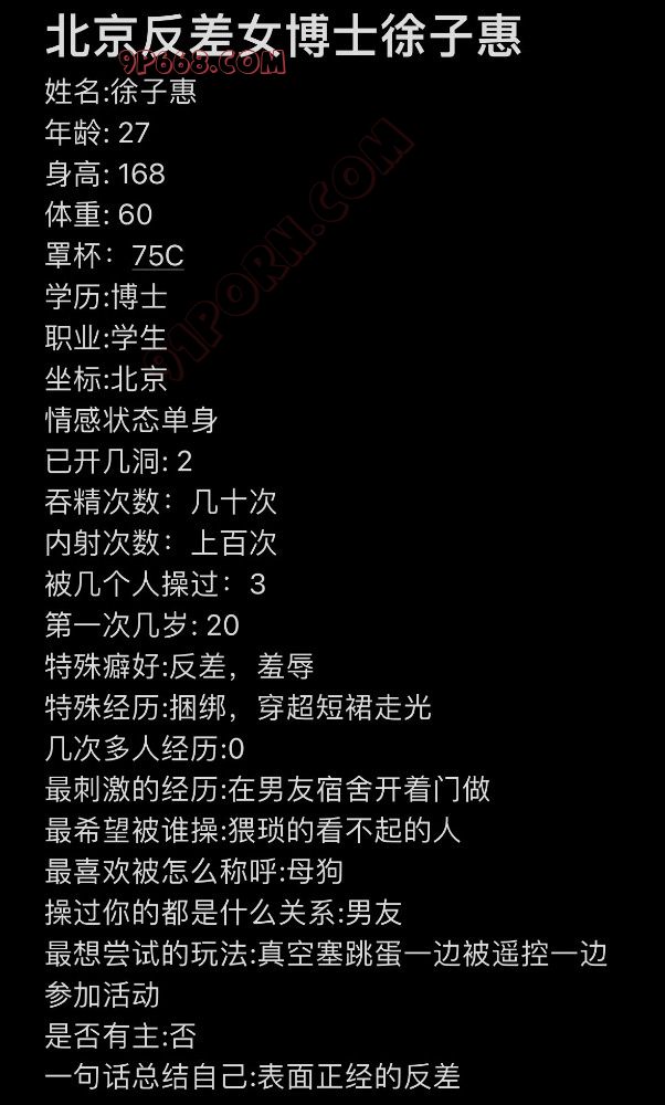 曝光个自愿来投稿求羞辱的帝都母狗女博士,女主会看回复