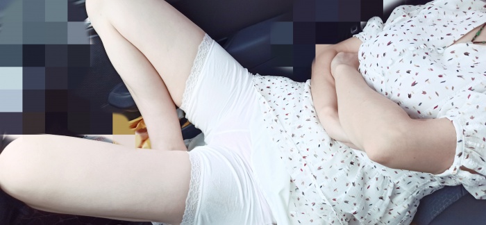 白色底裤下隐隐约约看到小内裤。