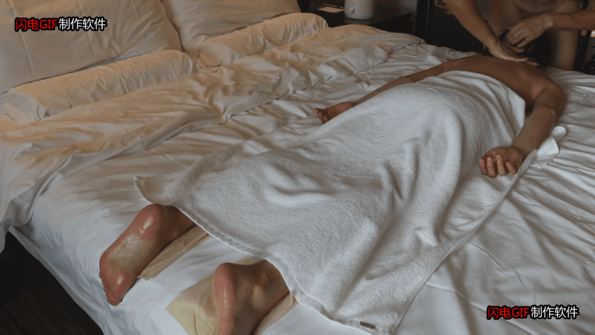 师傅常规从腿开始,貌似很正经,然后开始给屁屁补油,使劲揉了几把