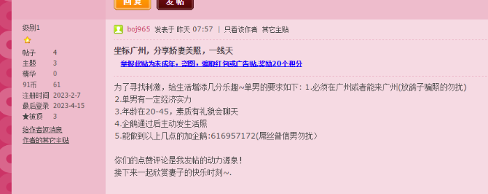 广州29岁素质单男绿主寻夫妻同好一起交流玩耍。经验比较丰富,上大学就和夫妻保持三人行的关系,自认比较懂夫妻们的情趣。喜欢绿、露出和鸠占鹊巢,希望能遇到有趣的绿帽红杏夫妻朋友