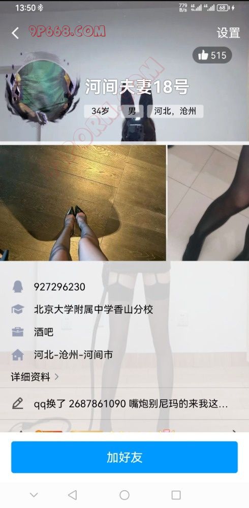 原来网名叫河间18号,现在改沧州夫妻了,qq号为2687671090大家不要再被骗了。