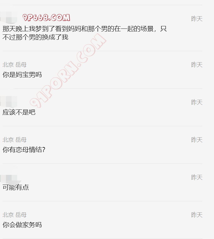 这位岳母还挺好加的,也没怀疑我加她的借口。第一天就聊到了恋母话题,慢慢开发吧。