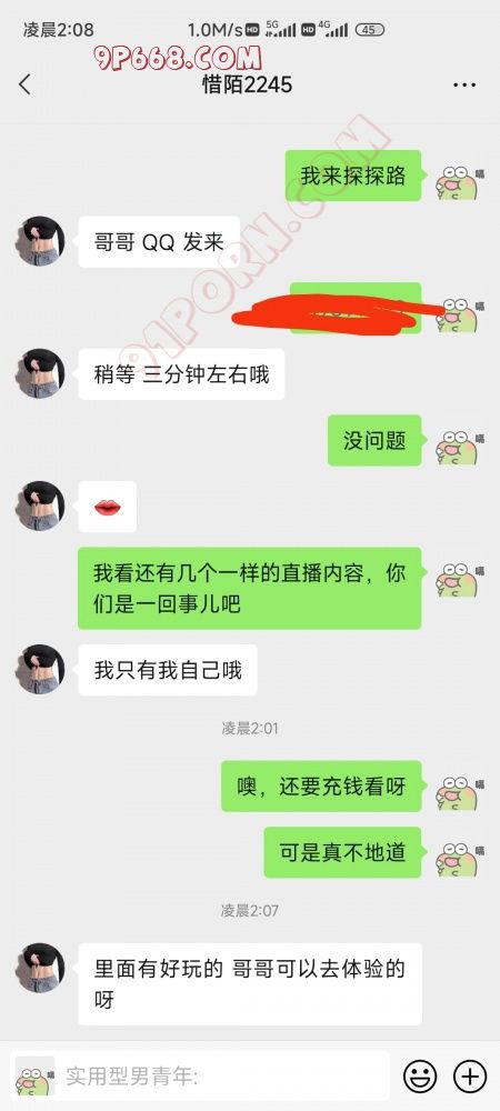1微信直播间让你刷十块钱礼物,然后加qq。期间还有托说“我看过,很白很爽”2加了qq之后,让你下载一个pici语音聊天软件。