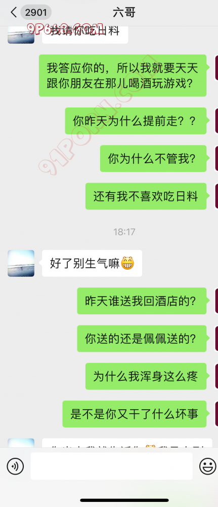 后续:女友已经到上海了,晚上打电话明显听到电话里又在酒吧或者ktv,我登她电脑微信看到那个男的下午问她到哪儿,然后给他发了一个ktv的地址,还给她发了一句“按我刚才电话给你说的,到了你直接进去找一个叫小峰的,电话**,你先在那儿待会儿,等晚上我们到,你跟着队伍一起进来试,就当我们不认识”,女友答复“能不能不要喝酒,我酒量真的不行”,他回复“上面喝不下,就下面喝”。你们说今晚包厢里又会是什么战况。
