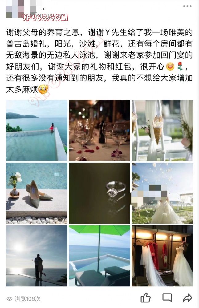 放出一张Q空间的截图,是她的普吉岛豪华婚礼的,邀请了我,我没去。