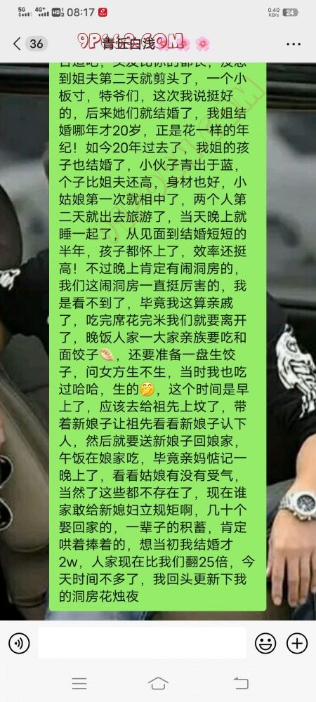 昨天是外甥的洞房花烛夜,185高22岁的小牛犊,不知道昨天晚上耕了几亩地,播种不播种已经不重要了,反正都发芽了,又一次感叹时间过得真快,看着我姐欢喜的样子,突然想到我姐结婚的时候,她初中都没毕业就不上学了,那时候农村的孩子尤其女孩子很少上学的,早早的打工了,后来打工认识了姐夫,两个人也算两情相悦吧,我记得第一次看到姐夫感觉挺反差的,明明曾经当过兵却留了一个大辫子,但是吧还挺阳刚,反正很不和谐,我姐问我怎样,那时候我小也不懂事,反正就觉得别扭,我就说不合适吧,头发比你的都长,没想到姐夫第二天就剪头了,一个小板寸,特爷们,这次我说挺好的,后来她们就结婚了,我姐结婚哪年才20岁,正是花一样的年纪!如今20年过去了,我姐的孩子也结婚了,小伙子青出于蓝,个子比姐夫还高,身材也好,小姑娘第一次就相中了,两个人第二天就出去旅游了,当天晚上就睡一起了,从见面到结婚短短的半年,孩子都怀上了,效率还挺高!不过晚上肯定有闹洞房的,我们这闹洞房一直挺厉害的,我是看不到了,毕竟我这算亲戚了,吃完席花完米我们就要离开了,晚饭人家一大家亲族要吃和面饺子 .