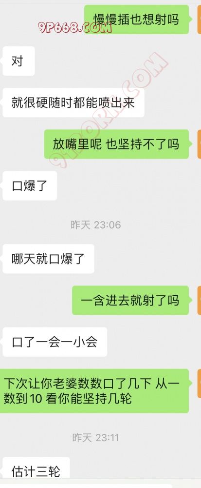 这兄弟经常和我交流淫妻幻想,早年纵欲过度,才20多岁的年纪最近就开始严重阳痿早泄(他老婆以前就经常因为他草草完事找我发骚),遇上这样的绿帽废物鸡巴我的虐瘾马上就犯了,下面上我和他们夫妻的聊天记录,算了还是先亮兵器吧