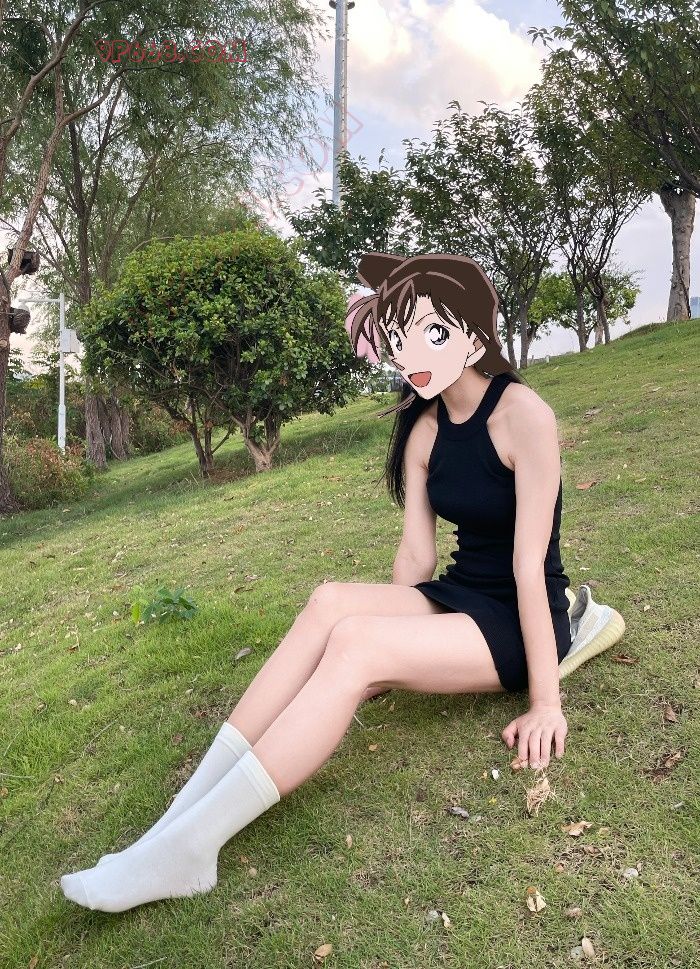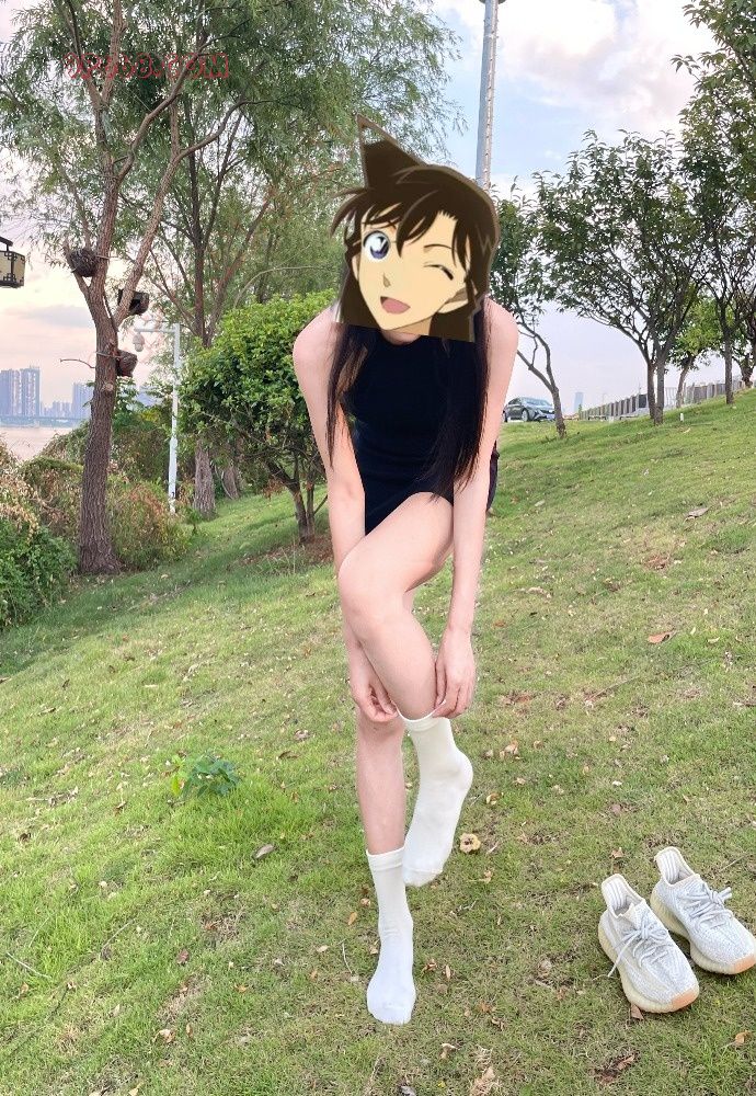 属于生活照了吧,运动鞋配上大白袜
