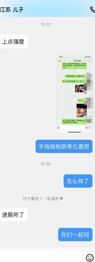 儿子的爸爸出院了,妈妈在他家照顾呢,刚才儿子偷偷抱了抱妈妈,还蹭了奶子。看看晚上有没有机会去妈妈那吧,他那是不方便了。继续PUA妈妈母子话题,让她觉得母子做也很正常。