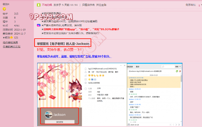 曝光一只傻狗 jackson,冒充论坛大神小烤肉,惯犯了