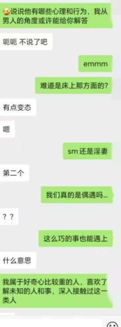 陆陆续续给新手夫妻开发了不少,有成功有失败,最快一周最慢三年,这次是创了新纪录。老公把老婆微信给我,假装加错联系上,当晚聊自慰,第二天聊受不了,把老公微信给我,三人群老婆直接在群里释放自我。聊天太长,先放第一段,过两天发更刺激的第二段。