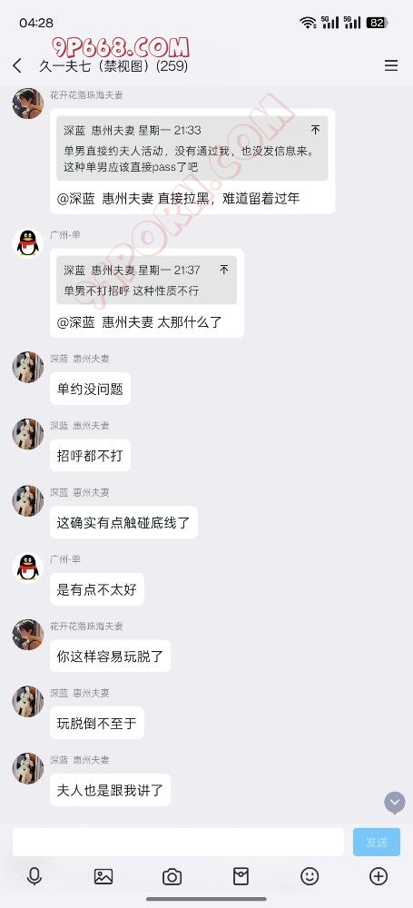 单男:单男入群肯定有门槛,空手套白狼和吃白食的,别来了,另外这是高质量真实夫妻情侣群,群里只欢迎高质量真心交友和分享经验的大神和真实线下玩家,一些意淫嘴炮男女你们就别费力气了,群里不欢迎,你们也进不去,