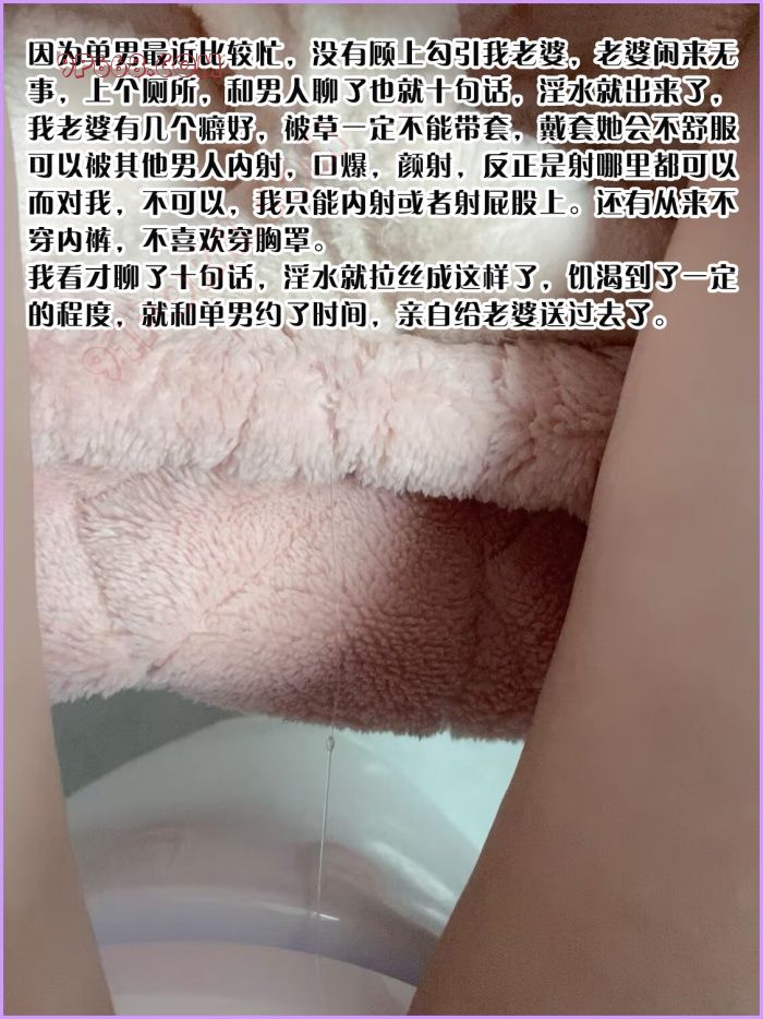老婆问过我如果万一期间怀上了别人的孩子怎么办,因为我老婆不喜欢戴套被草,我说那就生下来,正好没有孩子,老婆说,你能这样想的话,我就放心了,我怕真的怀上。其实我内心,就想让老婆怀上别人的孩子,这样才能符合一个绿奴的身份,还问过我,如果找了一个固定的,能不能接受住到家里来,以后你睡次卧,我们两睡主卧,我当时就硬了,很兴奋的说,非常乐意,我还能每天给你们做饭,照顾你们两个呢。还问过我,如果她被草的时候,能不能舔交合处,如果舔的别的男人的鸡吧你会怎么样,你能吃男人的精液吗,我全都实话一一对老婆做了回答,我说,我最希望的就是你被草的时候,别人一边草你,我一边给你舔穴,舔到男人的鸡吧无所谓,甚至我可以给他口鸡吧,我也特别想吃精液,当然说这些话的时候,声音是颤抖的,真的特别兴奋,可以和老婆坦诚这些压在心里的变态癖好。其实后来第二次老婆被别的男人内射完以后,我让他留着,不要洗,到隔壁来,我想舔,可能老婆刚刚开始不太适应,没有听我的,就洗了,洗完以后来隔壁找我,我迫不及待的就上去舔了,一股浓浓的精液味道,虽然洗了一下,但是骚穴里面还是有一些残留的精液,我就把舌头伸进去舔,还是吃到了一点点,很上头,但是老婆目前一共就这么两次被别的男人草,暂时还不能接受我在边上服侍看着,可以接受我在隔壁听着声音,慢慢适应吧。本