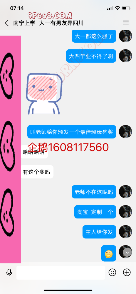 南宁本地及周边母狗想尝试的尽可联系!有条件可现实调教。