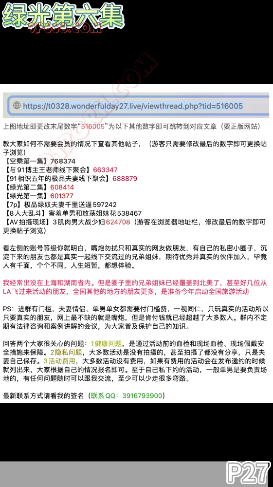 PS:进群有门槛,夫妻情侣、单男单女都需要付门槛费,一视同仁,只玩真实的活动所以只要真实的朋友,网上最不缺的就是嘴炮,但是肯付钱就已经超越了大多数人。群内不定期有法律咨询和案例讲解的会议,为大家普及保护自己的知识。