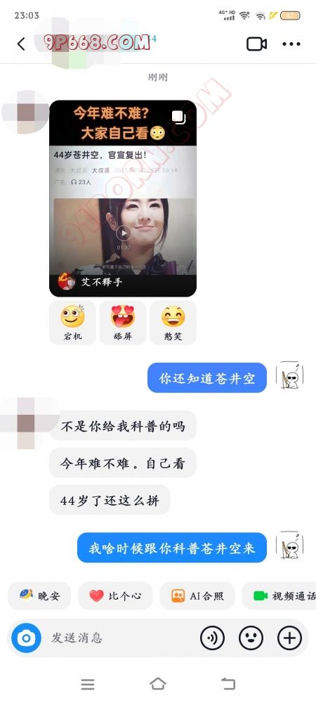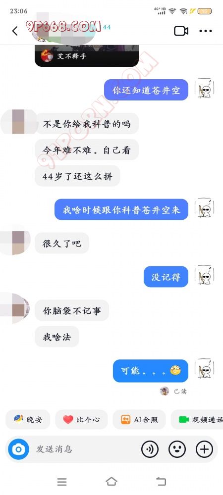 看聊天记录吧,我是没记得我跟她说过苍井空。最后我只发了一个可能。。。坏笑表情,我老婆没回我,如果她追问的话,我会发:是不是别的男的操你的时候给你科普的或者别的男的看着苍井空的av操你来?关于我怀疑我老婆出轨的事,可以看我前面的帖子