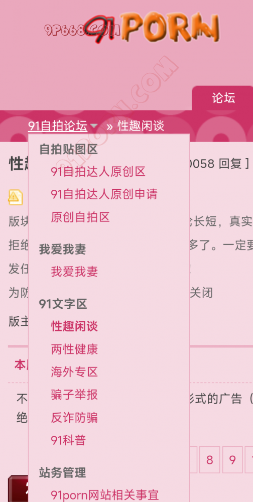 我翻墙后,浏览器输91porn.com可以进去,是91视频的页面,然后在右上角的下拉菜单里面选择 自拍论坛,就打不开了。。。