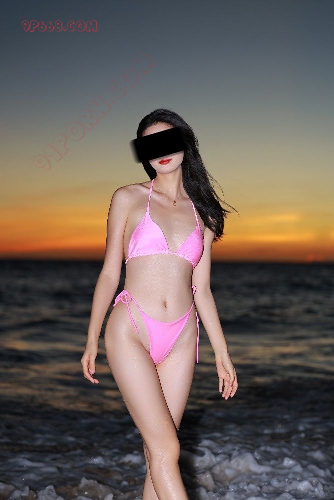 海边绝美晚霞拍照小姐姐不经意间露出的黑森林充满诱惑