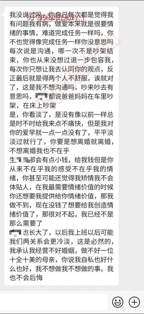 4655536三年了几乎没有夫妻生活,生完孩子之后几乎没有,今年就3次,还是我死灿烂打,我说三年了,之前说生完孩子是这样,后面又说性冷淡,现在又说之前给钱没给情绪价值。就是各种找理由。