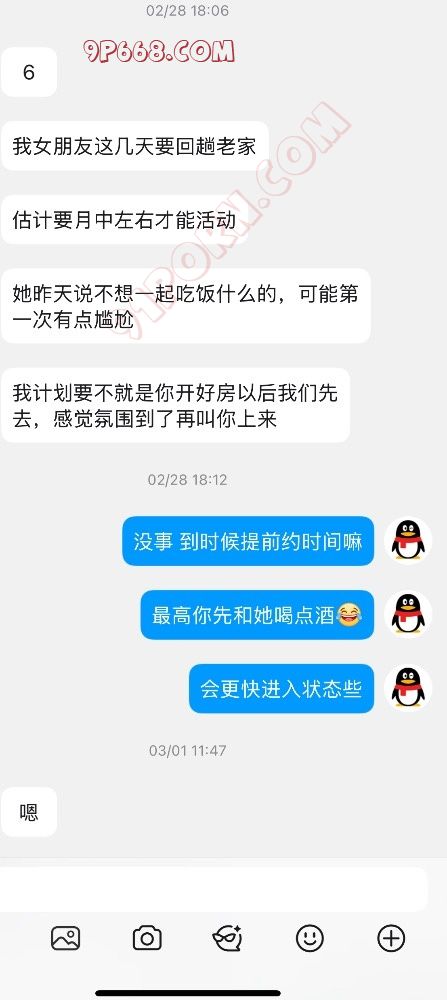 通过和他聊天得知他已经和女朋友沟通得很愉快,就差活动了,只是一直没找到合适的单男。
