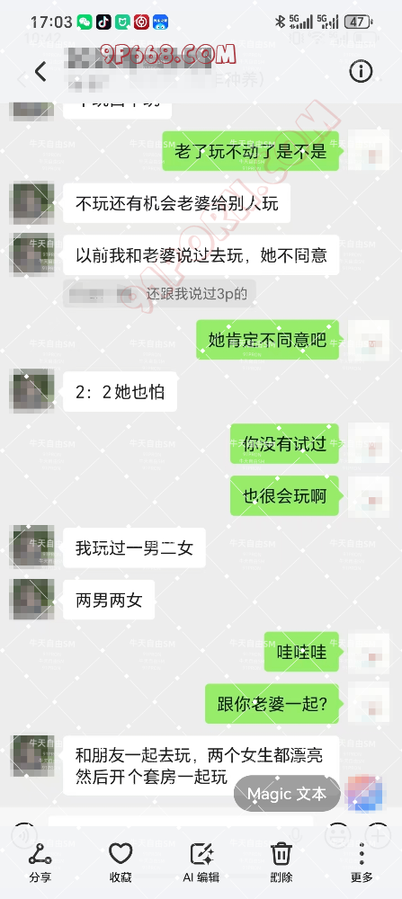 单男就是发了这2张截图勾起了老婆的好奇心,开始了聊天。单男的这两张截图成功玩到老婆的极品骚逼,还有让老婆也摸了他的大鸡巴。