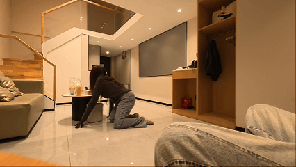 上楼拿个东西,实在没办法跪着上去,但是在下楼到地面的一瞬间,立马切换母狗姿态
