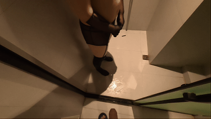 跪着过来的时候本来打算发骚,发现女主,就是我的老婆洗澡出来,立马害羞的蹲姿在我旁边,哈哈